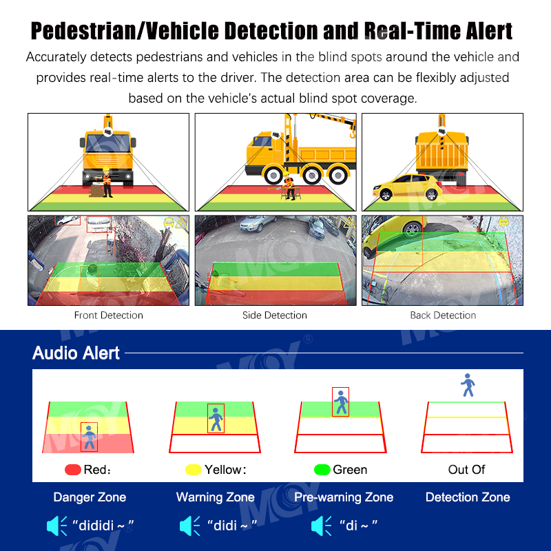 4 Channel AI BSD Pedestrian Direction Indicator Blind Spot Camera for Construction Truck