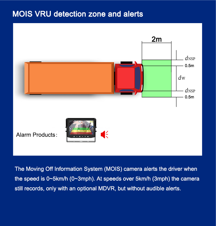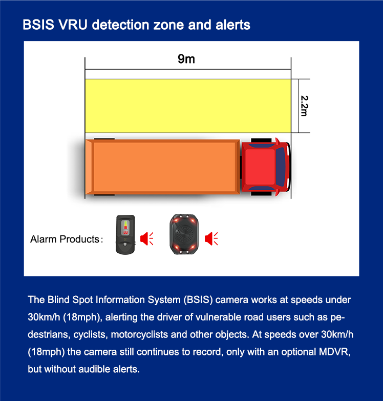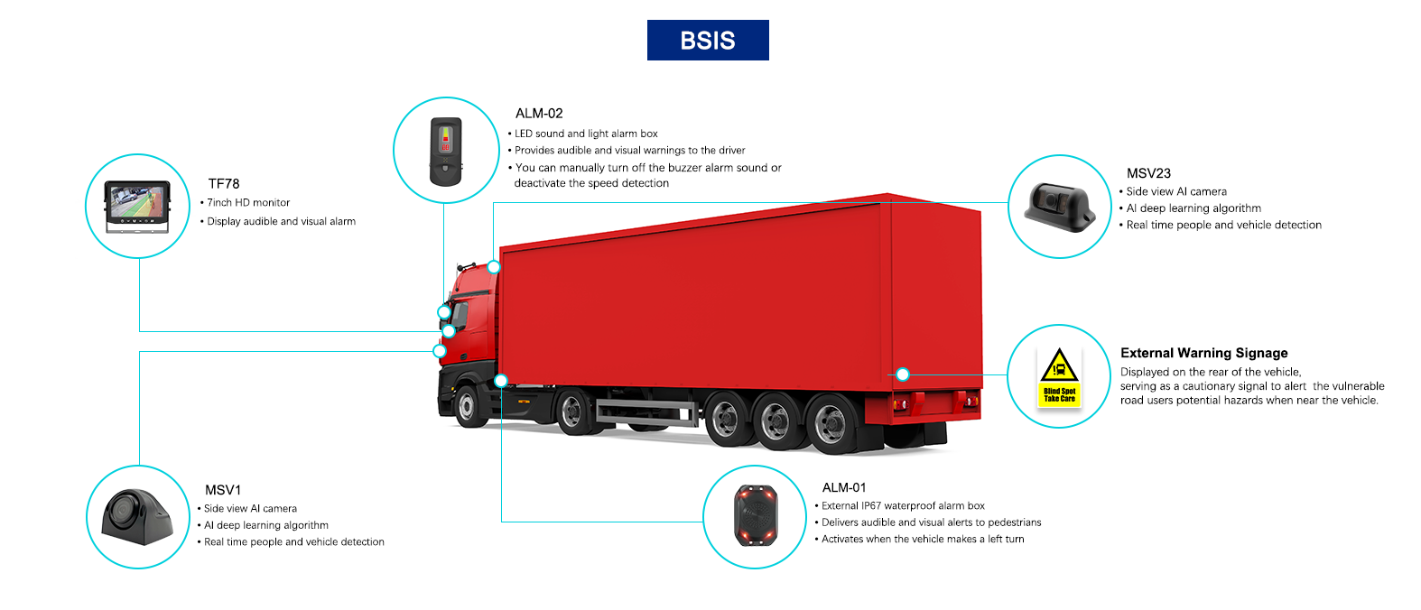 The core technology includes both the Blind Spot Information System (BSIS) and the Moving Off Information System (MOIS), which are now mandated under the latest Direct Vision Standard 2024 issued by Transport for London. These systems can be deployed as standalone or integrated solutions, and are also compatible with our IoT cloud platform for advanced monitoring capabilities.
