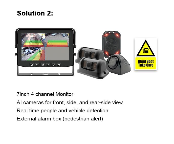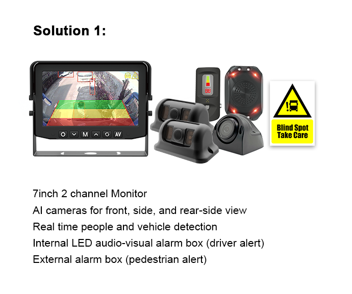 Our AI-powered cameras are engineered for complex urban driving conditions, effectively enhancing situational visibility and safety for vehicles in congested environments. The system automatically detects vulnerable road users—such as pedestrians and cyclists—in front of, to the side of, and within the vehicle’s blind spots, providing timely audio-visual alerts to the driver.