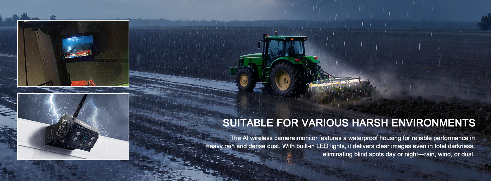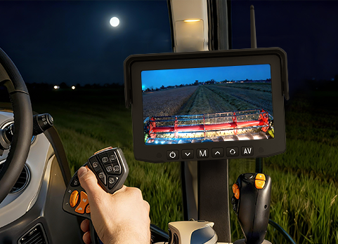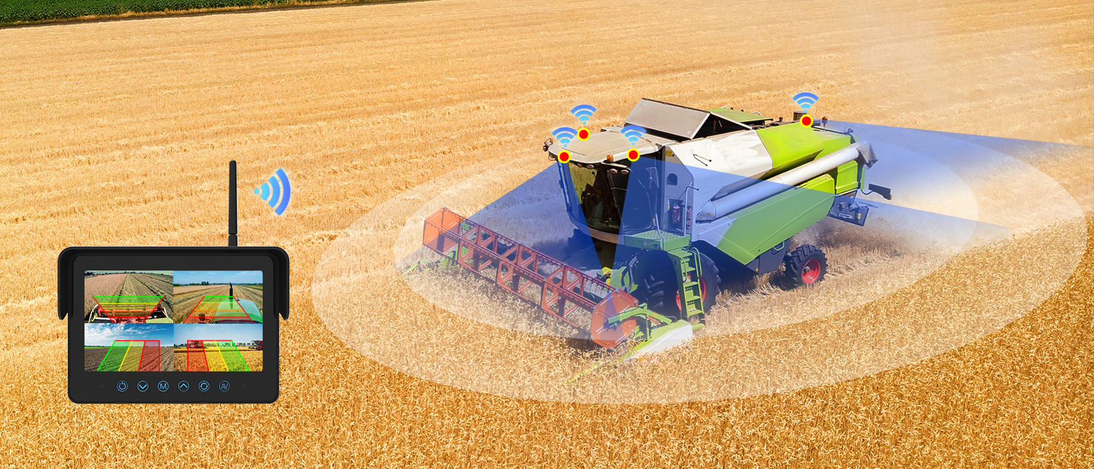 Large agricultural vehicles often have significant blind spots, making it difficult to fully assess the surroundings with mirrors alone. This system, with its synchronized four-camera display, allows the driver to easily monitor all sides of the vehicle, preventing sideswipes or collisions caused by limited visibility.