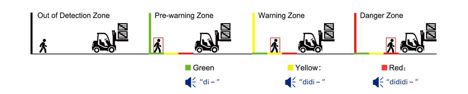 When the AI camera detects a person entering the blind spot monitoring area, the vehicle’s display will highlight the worker and